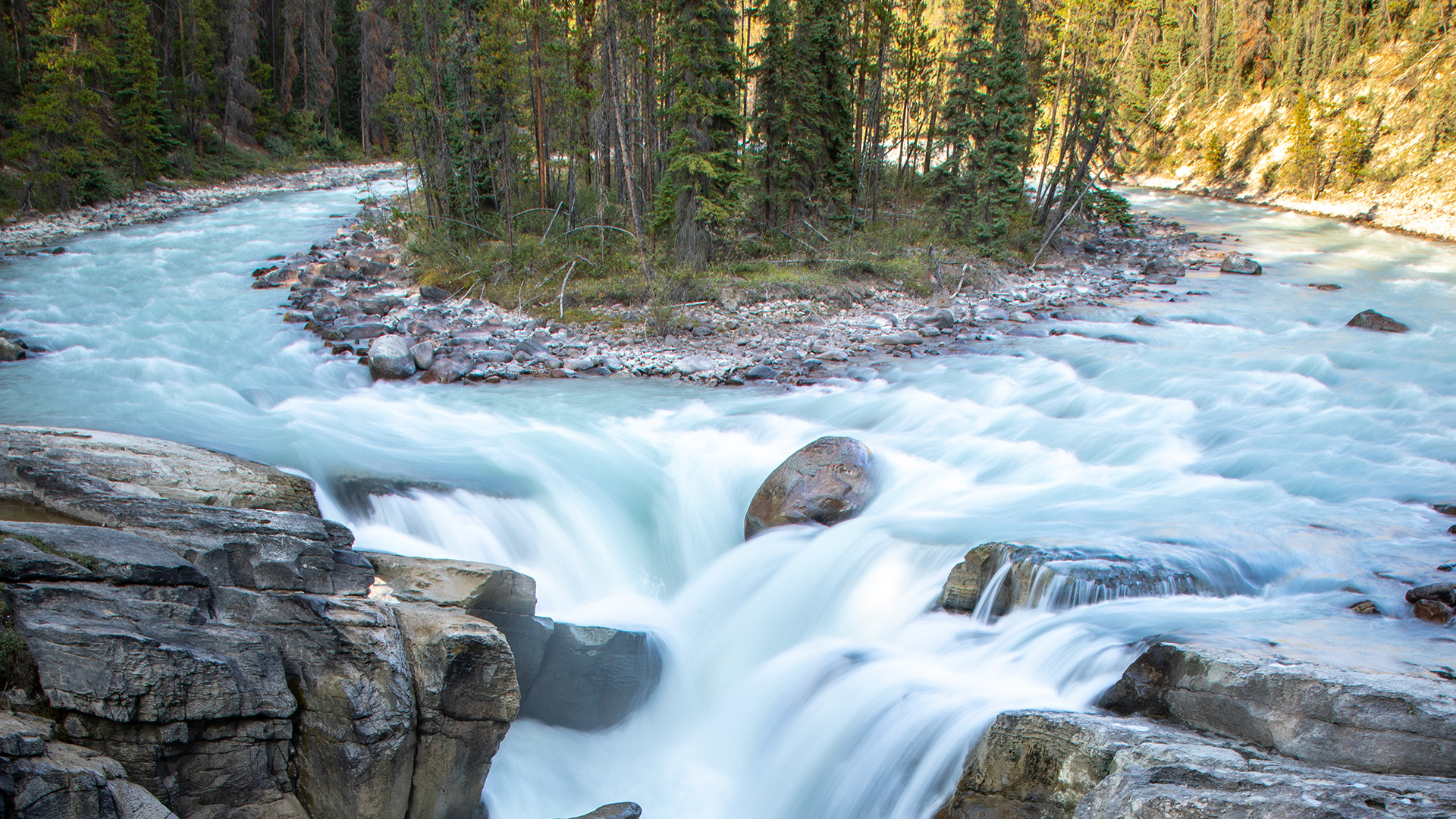 7. Further enhance the image by selectively darkening rocks using a brush mask and adjusting shadow levels, contrast, and exposure. This draws attention to the brighter, more prominent features like a waterfall.