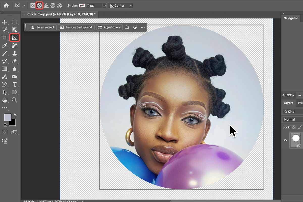 Once the circular frame is created, you can manipulate both the subject and the frame.