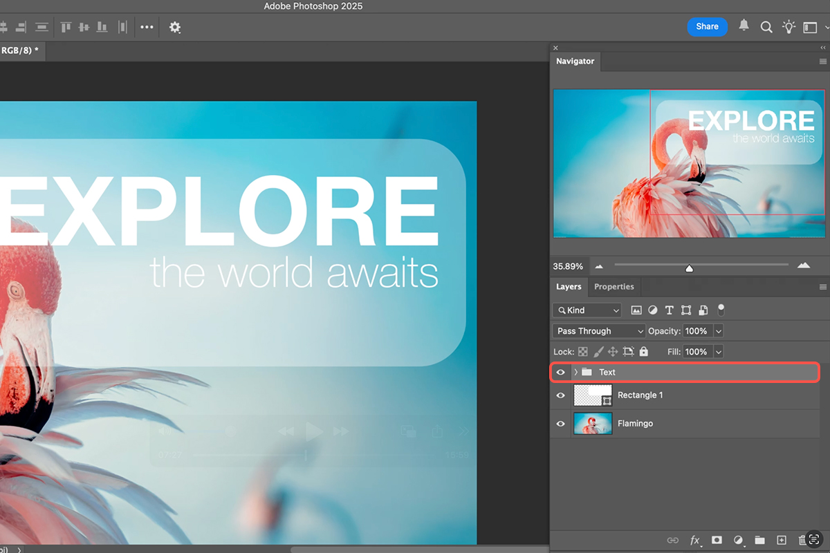 When you want multiple elements to act as a single unit for alignment (for example, text within a rectangle), create a group. Select the desired layers and press Ctrl/Cmd + G. Now, when you select this group along with another layer (like your rectangle), and use the alignment tools, the entire group will move as one, maintaining its internal arrangement.